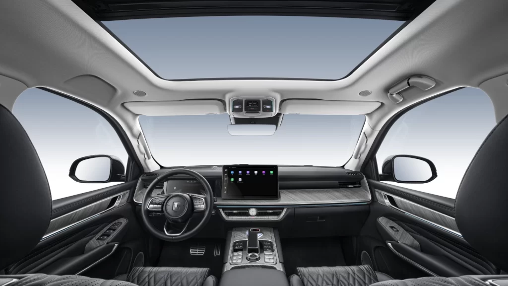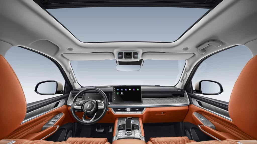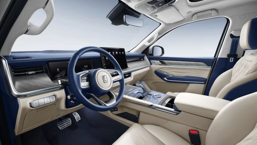 The rear-mounted spare tire to create an off-roading vibe and save storage space. while ensuring extra protection in accidents.